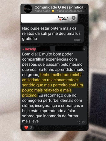 Eu tinha receio de fazer as terapias em grupo, mas agora amo! É um espaço de troca incrível e tenho aprendido muito com todos.